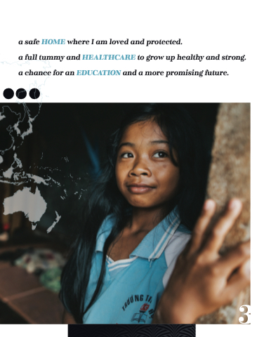 a safe HOME where I am loved and protected. a full tummy and HEALTHCARE to grow up healthy and strong. a chance for an EDUCATION and a more promising future. . . . 3
