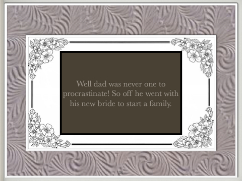Well dad was never one to procrastinate! So off he went with his new bride to start a family. 36