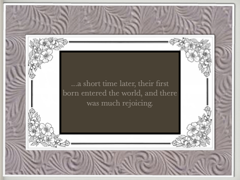 ...a short time later, their fi born entered the world, and there rst was much rejoicing. 40