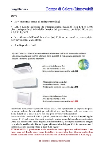 • LFL = Limite inferiore di Infiammabilità [kg/m3] (R32 LFL = 0,307