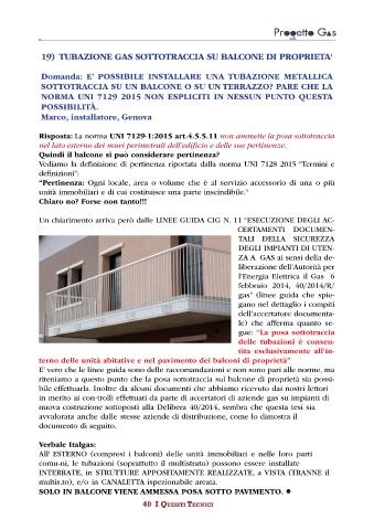 19) TUBAZIONE GAS SOTTOTRACCIA SU BALCONE DI PROPRIETA'
