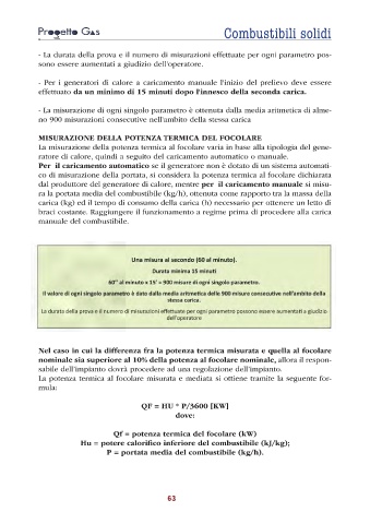 La potenza termica al focolare misurata e mediata si ottiene tramite la seguente for-