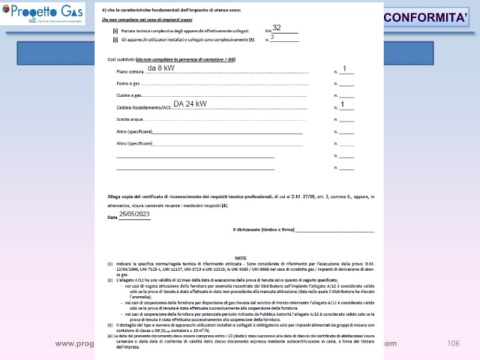 PARTE 2 – LA DICHIARAZIONE DI CONFORMITA’ L’ALLEGATO A12 www.progettogas.com - Il punto di riferimento del termoidraulico - info@progettogas.com 106