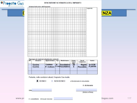 DI.RI. LA DICHIARAZIONE DI RISPONDENZA Cucina Caldaia B Facoltativo 24 Rigido In CCR Cucina P. Cottura P.Cott. Facoltativo 6 Flessibile A parete X www.progettogas.com - Il punto di riferimento del termoidraulico - info@progettogas.com 117