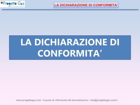 LA DICHIARAZIONE DI CONFORMITA’ LA DICHIARAZIONE DI CONFORMITA’ www.progettogas.com - Il punto di riferimento del termoidraulico - info@progettogas.com 24