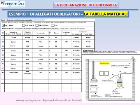 LA DICHIARAZIONE DI CONFORMITA’ ESEMPIO 1 DI ALLEGATI OBBLIGATORI – LA TABELLA MATERIALI www.progettogas.com - Il punto di riferimento del termoidraulico - info@progettogas.com 49