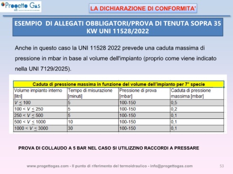 PROVA DI COLLAUDO A 5 BAR NEL CASO SI UTILIZZINO RACCORDI A PRESSARE