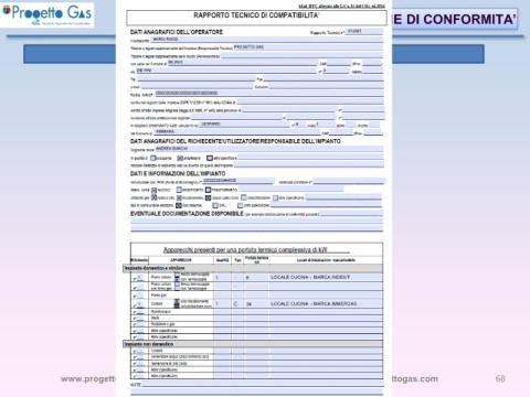 PARTE 2 – LA DICHIARAZIONE DI CONFORMITA’ L’RTC IL RAPPORTO TECNICO DI COMPATIBILITA’ www.progettogas.com - Il punto di riferimento del termoidraulico - info@progettogas.com 68