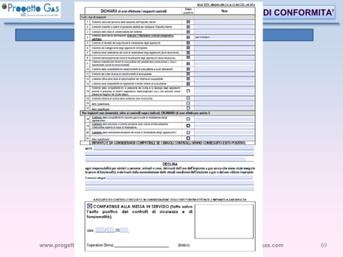 PARTE 2 – LA DICHIARAZIONE DI CONFORMITA’ L’RTC IL RAPPORTO TECNICO DI COMPATIBILITA’ www.progettogas.com - Il punto di riferimento del termoidraulico - info@progettogas.com 69
