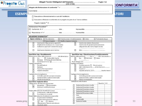 PARTE 2 – LA DICHIARAZIONE DI CONFORMITA’ ESEMPIO DI ALLEGATI OBBLIGATORI COMPILATI DA INSTALLATORI www.progettogas.com - Il punto di riferimento del termoidraulico - info@progettogas.com 90