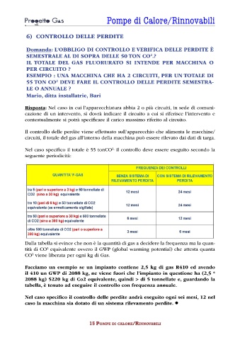 Nel caso specifico il controllo delle perdite andrà eseguito ogni sei mesi, 12 nel
