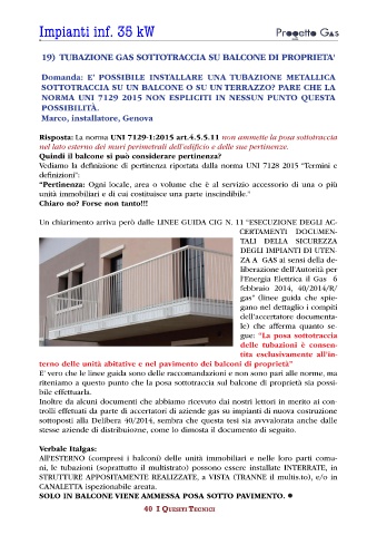 19) TUBAZIONE GAS SOTTOTRACCIA SU BALCONE DI PROPRIETA'