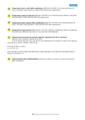 16 Temperatura acqua motore (°C): indicare, solo per i motori a combustione interna, la temperra-