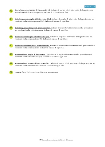 14 Sottofrequenza: soglia di intervento (hz): indicare la soglia di intervento della protezione nei