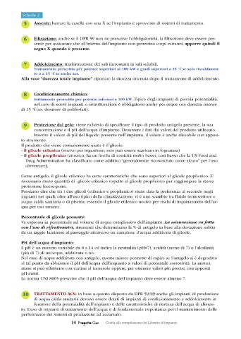 concentrazione e il pH dell’acqua d’impianto. Desumere i dati dai valori del prodotto utilizzato.
