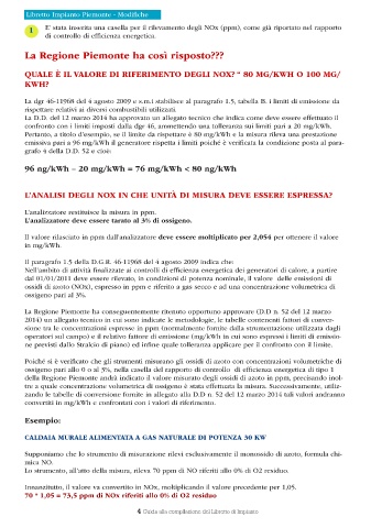 della Regione Piemonte andrà indicato il valore misurato degli ossidi di azoto in ppm, precisando inol-