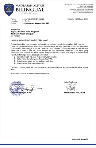 Dalam rangka persiapan dan pelaksanaan Asesmen Akhir Semester (AAS) TA. 2023-2024 yang akan