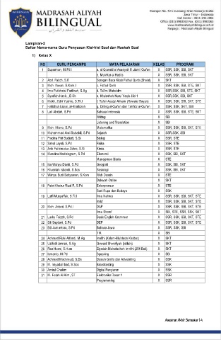 Daftar Nama-nama Guru Penyusun Kisi-kisi Soal dan Naskah Soal