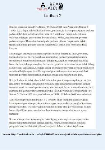 Latihan 2 *sumber: https://mediaindonesia.com/opini/544280/restorative-justice-dalam-pemberantasan-tipikor