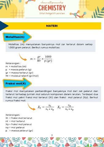 fraksi mol yakni fraksi mol terlarut (Xt) dan fraksi mol pelarut (Xp). Berikut