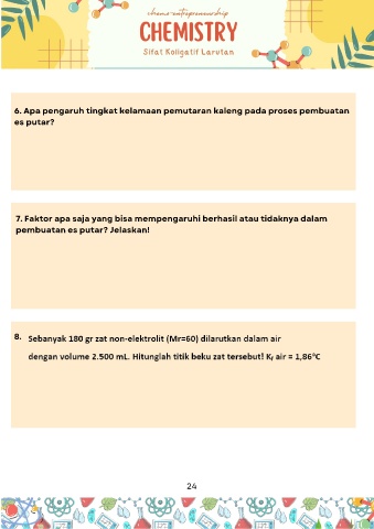 6. Apa pengaruh tingkat kelamaan pemutaran kaleng pada proses pembuatan es putar? 7. Faktor apa saja yang bisa mempengaruhi berhasil atau tidaknya dalam pembuatan es putar? Jelaskan! 8. 24
