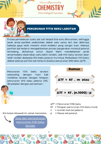 akibat adanya partikel zat terlarut disebut penurunan titik beku (ΔTf).