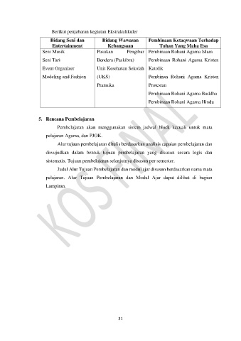 Pembelajaran akan menggunakan sistem jadwal block kecuali untuk mata