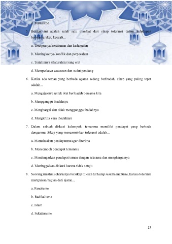8. Seorang muslim seharusnya bersikap toleran terhadap sesama manusia, karena toleransi
