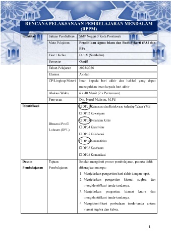 Identifikasi ☐ DPL1 Keimanan dan Ketakwaan terhadap Tuhan YME