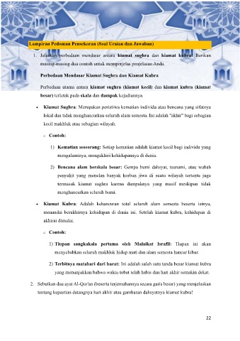 1. Jelaskan perbedaan mendasar antara kiamat sughra dan kiamat kubra! Berikan