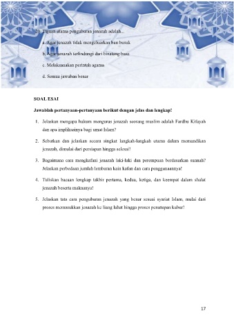 20. Tujuan utama penguburan jenazah adalah...