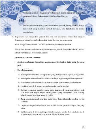 o Wudhukan jenazah sebagaimana wudhu shalat, namun tidak perlu membasuh
