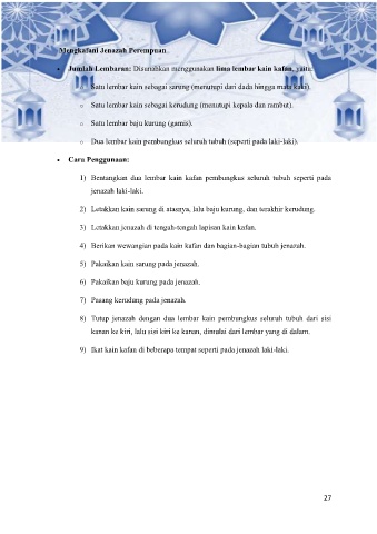 9) Ikat kain kafan di beberapa tempat seperti pada jenazah laki-laki.
