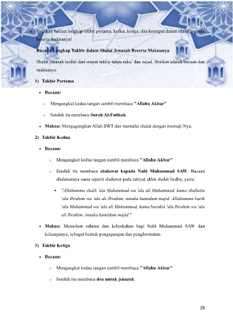 4. Tuliskan bacaan lengkap takbir pertama, kedua, ketiga, dan keempat dalam shalat jenazah