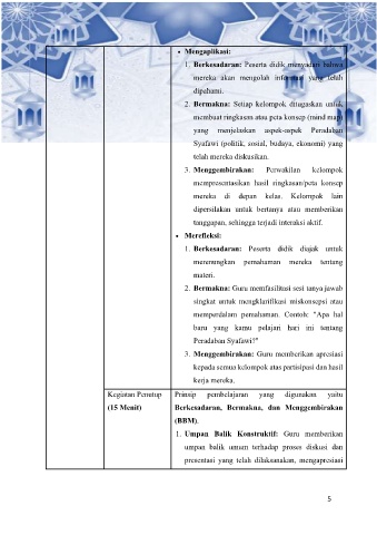Kegiatan Penutup Prinsip pembelajaran yang digunakan yaitu