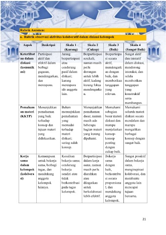 a. Rubrik observasi aktivitas kolaboratif dalam diskusi kelompok