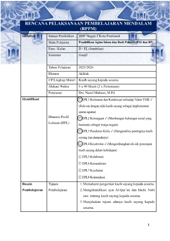 Identifikasi ☐ DPL1 Keimanan dan Ketakwaan terhadap Tuhan YME ✓