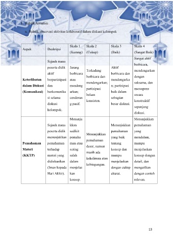 a. Rubrik observasi aktivitas kolaboratif dalam diskusi kelompok
