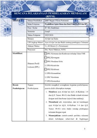 Identifikasi ☐ DPL1 Keimanan dan Ketakwaan terhadap Tuhan YME