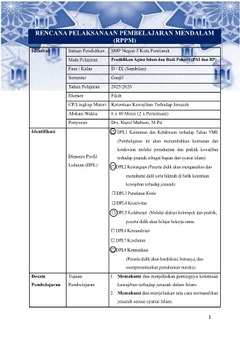 Identifikasi ☐ DPL1 Keimanan dan Ketakwaan terhadap Tuhan YME