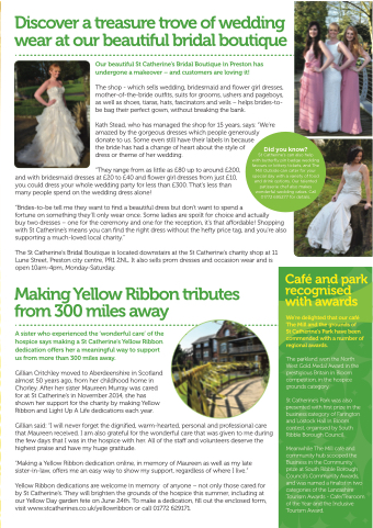 St Catherine’s can also help with butter y pin badge wedding favours or lottery tickets, and The Mill Outside can cater for your special day with a variety of food and drink options. Our talented patisserie chef also makes wonderful wedding cakes. Call 01772 695277 for details.