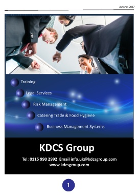Autumn 2017 Training Legal Services Risk Management Catering Trade & Food Hygiene Business Management Systems KDCS Group Tel: 0115 990 2992 Email info.uk@kdcsgroup.com www.kdcsgroup.com 1