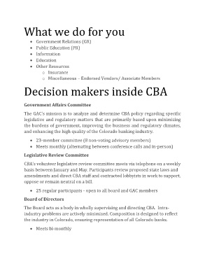 amendments and direct CBA staff and contracted lobbyists in work to support,