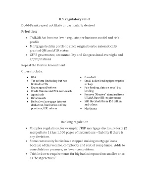 • Defensive (mortgage interest • SIFI threshold from $50 billion