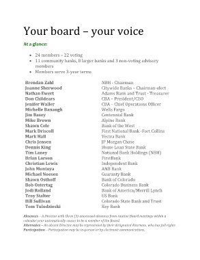 • 11 community banks, 8 larger banks and 3 non-voting advisory