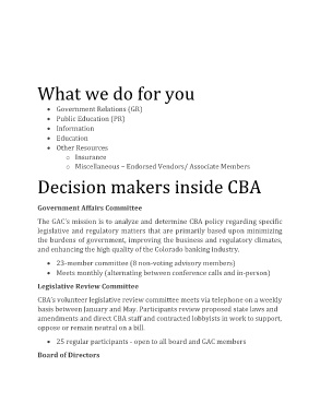 amendments and direct CBA staff and contracted lobbyists in work to support,