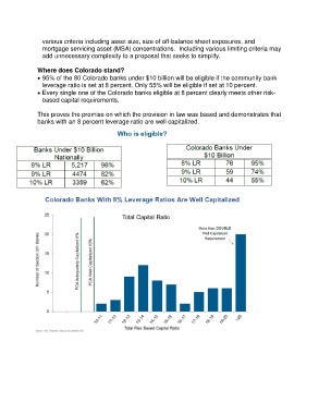 • 95% of the 80 Colorado banks under $10 billion will be eligible if the community bank