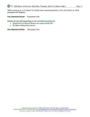 CBA Board of Directors, CBA office, Thursday, April 20, 2:00pm-4:00pm Page 11.