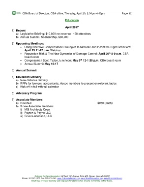 CBA Board of Directors, CBA office, Thursday, April 20, 2:00pm-4:00pm Page 17.
