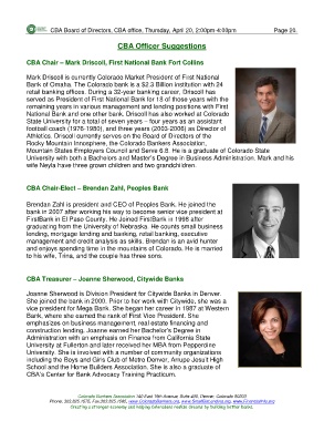 CBA Board of Directors, CBA office, Thursday, April 20, 2:00pm-4:00pm Page 20.